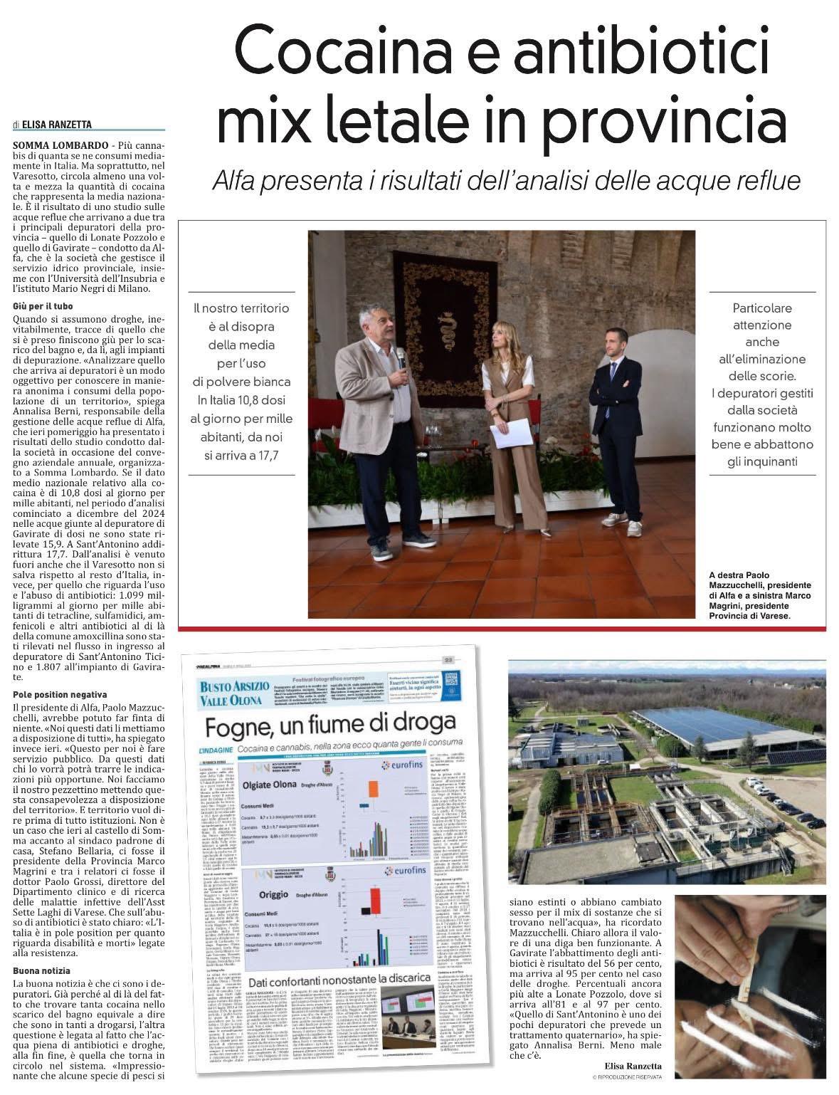 Indagine di Alfa sull’acqua del Varesotto: presenti residui di droghe, antibiotici e farmaci