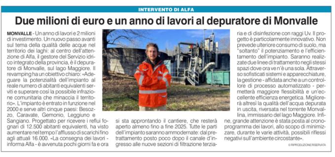 Due milioni di euro e un anno di lavori al depuratore di Monvalle