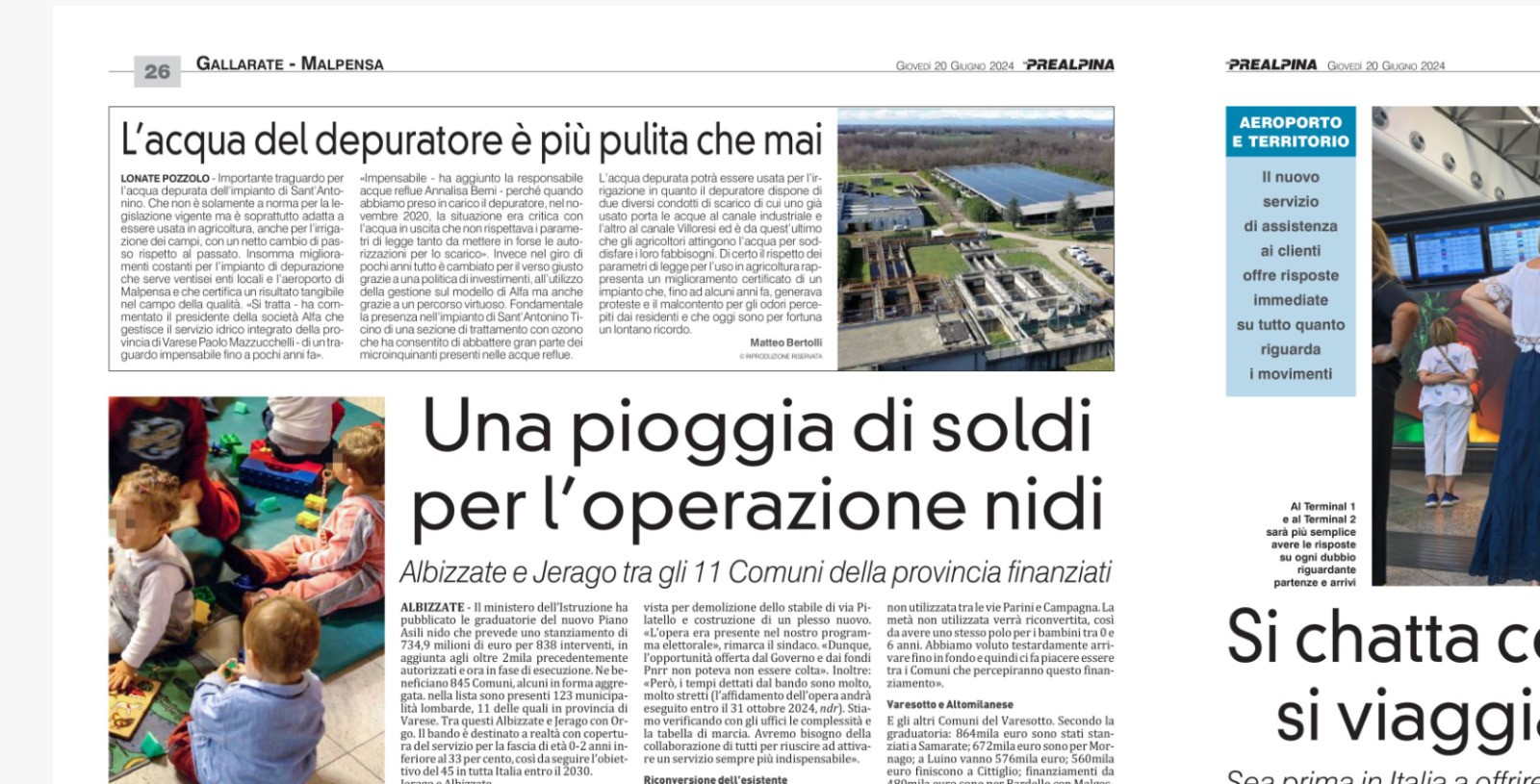 Lonate Pozzolo - L'acqua del depuratore è più pulita che mai
